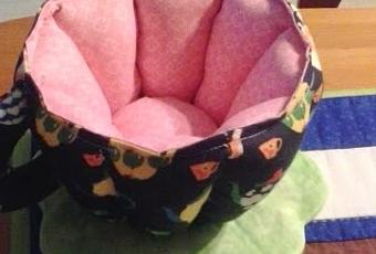 La verdad que pensé que era más complicada de hacer, pero me puse ayer por la tarde y la hice. En lo que más tardas es el relleno que lleva.... Y me encantó hacerla, yo la he puesto sobre la mesa de mi cocina que solo tenía puesto un camino de mesa, que fue mi primer trabajo de patchwork, cuando empecé...