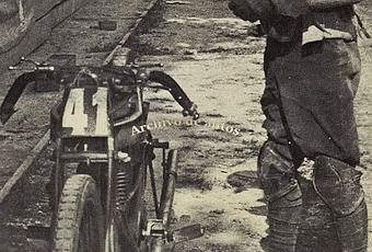 La vieja fotografía, de la sección “Postales de Ayer”, nos trae el documento de la participación de Tazio Nuvolari en las motos de carrera. Pero no hay datos sobre esa foto. Ni qué moto era, ni el circuito, ni el año, menos aún que campeonato estaba disputando.