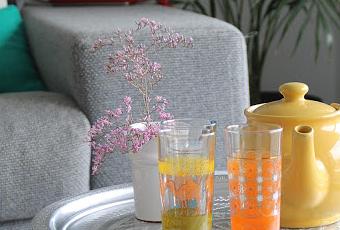 Un momento y un espacio dedicado al té. Siempre podemos improvisar pequeños lugares en nuestra vivienda, a veces la hora de la merienda se hace esperar, con ella una bandeja de aluminio tallada a mano en lo más profundo del zoco de Fez , un par de vasos y una tatera bien llena. ¿Qué más se puede pedir? Si! Es uno de mis tesoros, y una de las piezas más dinámicas que hay en nuestro hogar, quizá porque unos días preside el salón, otros figura apoyado en la estantería y otras veces actúa como lo que es, un bella bandeja llena de tradición!