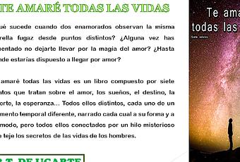 Te amaré todas las vidas es un libro compuesto por siete relatos que tratan sobre el amor, los sueños, el destino, la muerte, la esperanza... Todos ellos distintos, cada uno de un momento temporal diferente, narrado cada cual, a su forma y a su modo, pero todos ellos conectados por un hilo misterioso que teje los secretos de las vidas de los hombres.