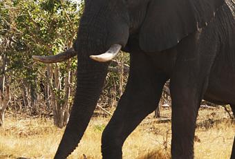 Los elefantes nos ven como una sola cosa, como una unidad. Eso nos dijo el guía del safari antes de salir. El olor a combustible del vehículo impedirá que nos puedan oler. Menos mal, porque los elefantes africanos son extremadamente agresivos. De bajarnos del auto, a la distancia que estuvimos de ellos, no teníamos chance de sobrevivir. Una tarde pasó uno tan cerca de nuestra carpa, en Linyanti, que pensé que nos iba a oler y se iba a enloquecer. Por suerte decidió seguir su paso hacia la copa de un árbol para comer. Son enormes. Los machos andan solos y las hembras con las crías. Al año, los elefantes machos abandonan la organización matriarcal y comienzan su vida adulta. El Parque Nacional Chobe es un lugar ideal para disfrutar de estos animales. Hay montones de ellos y destruyen todo a su paso. La escenografía del parque lo demuestra con miles de árboles derrumbados. Sus excrementos, del tamaño de una cabeza humana, completan la escena. Los hay por doquier.