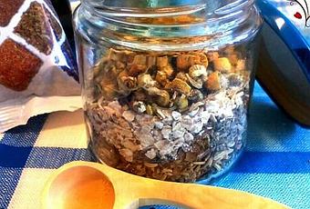 En un bote de cristal introducimos las plantas medicinales en las proporciones indicadas, mezclamos y cerramos en tarro.