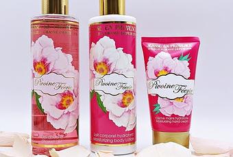junto con el aroma a violetas el de las peonias se encuentra entre mis favoritos así que cuando me llegaron nuevos productos de la linea Pivoine Féerie de Jeanne En Provence me puse muy contenta. El ingrediente principal de esta linea es la peonia, o también llamada "flor de mil pétalos", una flor que además de ser preciosa huele de maravilla.