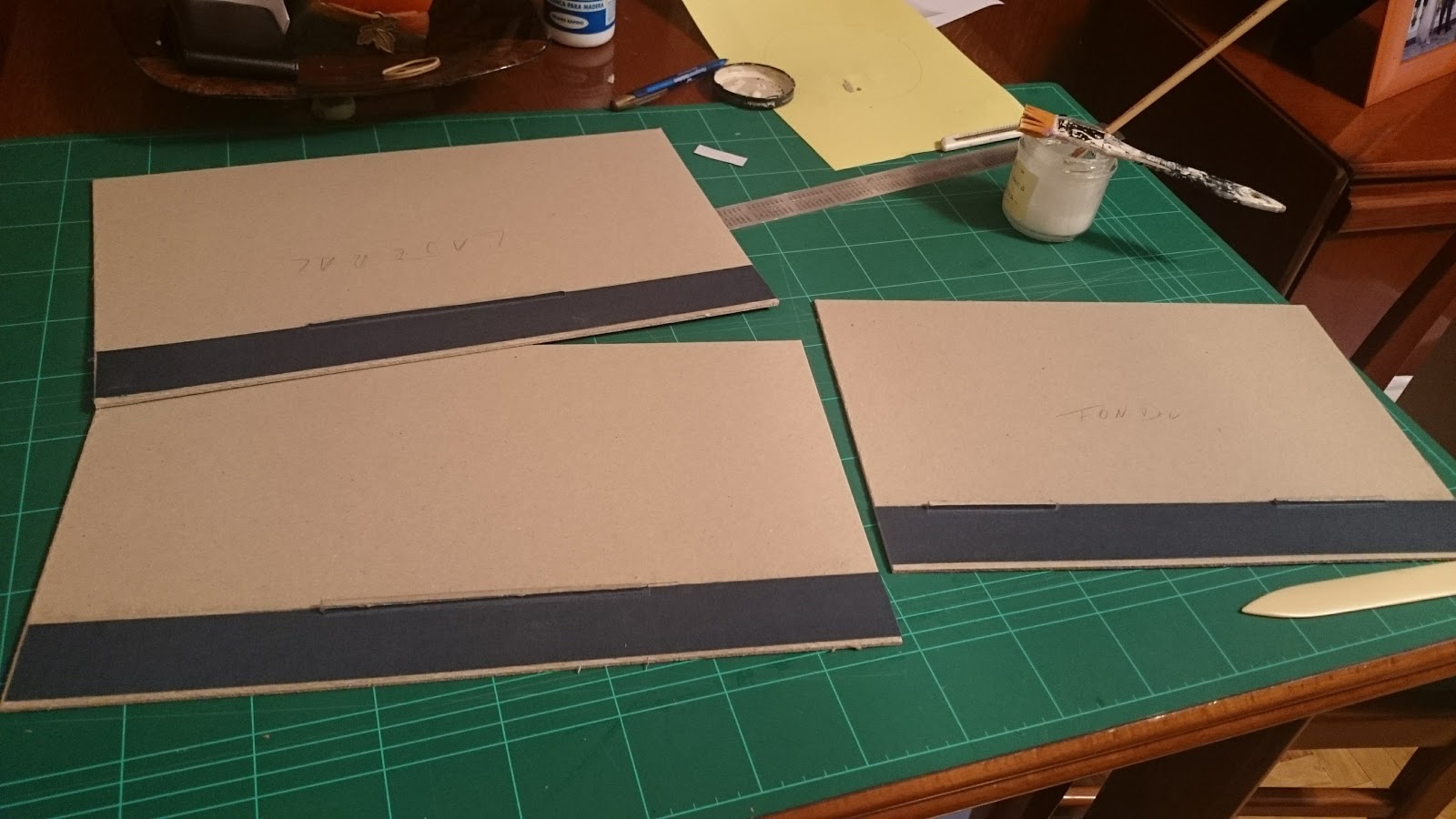 Se van preparando las piezas para pegar. En este caso el interior va forrado de tela y el exterior en papel.