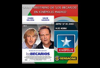 Gracias a nuestros amigos de Sensacine, podréis conseguir participando en nuestro concurso, una de las 10 entradas dobles que tenemos para ir el 27 de junio a las 19:30, al preestreno en Kinepolis Madrid de "Los Becarios". Esta divertida comedia dirigida por Shawn Levy ("Noche en el museo", "La Pantera Rosa" o "Acero Puro") y protagonizada por Owen Wilson y Vince Vaughn, nos cuenta la alocada historia de dos cuarentones que tras haber perdido su empleo, consiguen un contrato de prácticas en la empresa más popular de Internet: Google, en la que tendrán que competir con jóvenes veinteañeros mucho más familiarizados que ellos en el mundo digital.