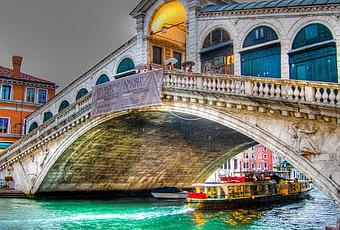 Este fue una vez que el único puente a través del Gran Canal. El Puente de Rialto marca el lugar del primer asentamiento de la isla, llamado Rivus Altus (banco alto). Fue construido en 1588, unos 150 años después del colapso de un puente de madera anterior. Este arco de piedra soporta dos calles muy transitadas y un conjunto de tiendas. Es un punto de vista favorito para los turistas que toman o posan para fotos. Y para ver el surtido de barcos siempre pasando por debajo de él. Este es un lugar emblemático que ver en Venecia.