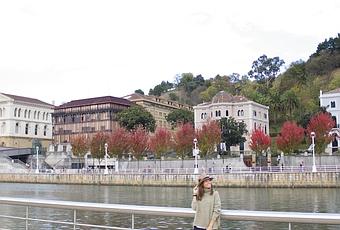 I had the tea time of this week at the Carlton Hotel in Bilbao which actually is one of the most beautiful and emblematic hotels of the city. As you can see in the pictures is located in one of the main squares with the Iberdrola building in front and close to Guggenheim Museum. After taking a delicious and high quality pastry and bakery for breakfast we went for a last walk along the river before going to the football match. Do you like my new giant pet? hehehe. This “puppy” is the mascot of the city and as you can see in the pics is cute super big dog just at the door of the museum and is exclusively made with colorful flowers and plants, I love it! But then I got scared with her partner, the giant metal spider… Finally I do admit that I absolutely fell in love with the views from this side of the river with that elegant architecture of the houses and in my opinion even colonial style contrasting with the beautiful reddish color of the leaves on the trees… feels like Autumn!