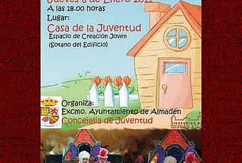 La Concejalía de Juventud del Excmo. Ayuntamiento de Almadén organiza teatro infantil el día de los Reyes Magos, 6 de Enero a las 18:00 horas. En el Espacio de Creación Jóven situado en el Sótano de la Casa de la Juventud.