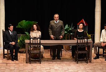 Con un elenco conformado por Grecia Augusta Rodríguez, Marielena González, Angélica Arteaga, Daniel Rodríguez, Pedro Borgo; vuelve a la escena caraqueña esta comedia satírica cuya historia se remonta a mediados de los años 20, cuando la junta directiva de la Sociedad Louis Pasteur celebra su aniversario cincuenta y sus seis miembros en su afán de fomentar las artes y la cultura del pueblo de San Rafael de Ejido, deciden montar un acto cultural con la representación de la vida y obra de Cristóbal Colón, pero en el proceso terminan delante del público evocando y mostrando tragicómicamente la vida íntima de cada uno de ellos: sus miserias, pasiones, anhelos, secretos y frustraciones, todo ello mezclado en un juego del “teatro dentro del teatro”.