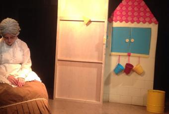 Cuando entramos en la sala nos encontramos a la abuelita durmiendo, es de destacar la caracterización de la actriz, los niños abrían los ojos todo sorprendidos y les daba miedo hasta pestañear por si se perdían algo.