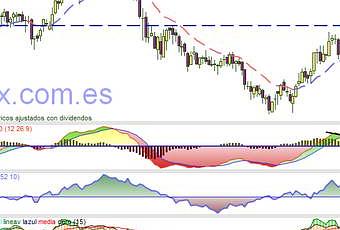 En los gráficos diarios de Endesa se puede ver como el MACD ha ido marcando puntos descendentes mientras que el precio hacía nuevos máximos, nada exagerado, pero si es significativo. El Histograma nos está marcando un posible techo.