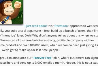 Mailchimp es un proveedor de servicios de marketing por correo electrónico fundado en el año 2001. Inicio como un servicio de pago, sin embargo ocho años después, en Septiembre del 2009, apostó por un modelo freemium.