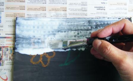3.- Poner una capa de goma espesa ( sin diluir ), teniendo en cuenta que mientras más gruesa sea esta, más grietas se harán. Dejar secar.