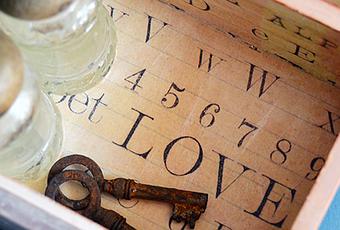 Cajones decorados con letras.