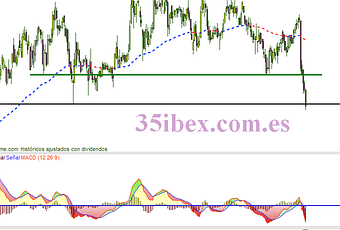 En el gráfico diario el zoom no me da para ver el posible movimiento, pero si nos vamos a los gráficos semanales, vemos como el soporte en el que de momento estamos, los 32 euros, es un soporte de importancia, en el que los recortes ya se han parado con anterioridad y que ha servido de base para varios rebotes.