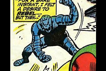 1. 1968: Los Vengadores nº 55 y 57-58. Si no recuerdo mal el asunto es que S. Lee, no sé sabe por qué, le mandó a Thomas crear un androide para tal supergrupo. Este decidió inspirarse en un personaje de Marvel de su infancia para ello pues estaba pensando meterlo cuando le dieron esas órdenes, y para introducirlo en la cole ideó una historia retorcida y estúpida que no cumplía su objetivo. Por eso el Cine no la ha replicado. Pese a tener ingenieros a mano, Thomas decidió poner un químico mañoso a crear un robot, quizás pensó que los 1ºs no podían crear androides, para que, una vez convertido en androide, crease a un ser sintético, el personaje que Thomas iba a introducir. Seguramente esa aproximación indirecta a la meta se debió a quese guionista quería tener para varios nºs y quería dar importancia a su recreación, que, insisto, no era un androide, eso lo era el ya mencionado, el entonces nuevo supervillano para los Vengadores. Estos episodios son muy confusos sobre la creación de vida artificial pero se puede deducir que Visión es una especie de monstruo deFrankenstein de M. Shelley. Es un ser vivo creado en un laboratorio. Por eso es sintético. Esto es por la Antorcha Humana original. Me cito a mi mismo: que desde el principio lo llamase [a Visión] sintezoide (sic), algo que sólo se aplica a este androide, cuando lo 1º que dice el creador de la Antorcha Humana en el histórico Marvel Comics nº 1 de 1939 es que ha creado un hombre sintético (synthetic man)... La peculiaridad de Visión, lo que le hace robótico, no es que sea una planta (sus células sintéticas se alimentan de luz solar) sintozoide sino que su cerebro es una computadora que alberga una mente humana, la de un hombre muerto, el Hombre Maravilla. Si bien amnésica. Nunca se ha aclarado si eso fue porquestaba moribunda o si la técnica de grabar mentes tiene sus límites (debe ser esto porque los Vengadores no han vuelto a hacer nada parecido). Como los personajes Marvel antaño tenían que ser freaks, Thomas decidió recargar la cosa dando a Visión una voz mecánica de modo que, aunque podía sentir y por ello gesticular, suena frío y monocorde, robótico, así que siempre da la impresión de ser un androide. Suficiente porque ahora y siempre la gente se queda sólo en la superficie/cuerpo. Eres lo que es tu cuerpo, no se quiere que la mente-corazón sea la que defina lo que es uno. El trauma heroico de la Visión siempre ha sido la tensión entre un exterior robótico/inhumano y un interior humano, cuando eso se perdió, todo el mundo le veía como un gentil humano, lo mataron y desde entonces se arrastra porque su trauma original no ha sido sustituido. La creación de Ultrón es todavía más confusa. Se supone que Pym estaba estudiando al robot-golem Hombre Dragón para poder reproducirlo. Nadie lo ha dicho pero suponemos que como químico estaba interesado en la alquimia esotérica usada por Diablo para animar a aquel. Pero Ultrón 1 es un robot maquinal, aunque tiene cara y puede hablar su cuerpo es el de una especie de batidora, así quextraña que sea una etapa en el camino a la vida sintética ya que vida artificial es otra cosa. Visión y Hombre Dragón son ejemplos de lo 1º y Ultrón de lo 2º (quizás en los 60, incluso para un lector de Ciencia Ficción como Thomas, las diferencias entre producto de laboratorio y máquina no estaban claras). Lo más extraño de todo es que Pym le dio capacidad hipnótica y un arma: un rayo Ultra. Por tanto Ultrón no se llama Ultrón porquestá más allá de lo humano. Es todo tan absurdo questoy esperando a que alguien desvele por fin que Pym no creó a Ultrón 1. El caso es que "Pym" hizo a su robot con la mentalidad de un pollito pero con una inteligencia sobrehumana capaz de aprender. Así, quizás (nunca se ha explicado el origen del odio mortal que hacia su creador tiene esta creatura) al experimentar el rechazo de lo que su mente recién salida del huevo había reconocido como su padre, como el monstruo de Frankenstein de M. Shelley, sescapa del laboratorio donde ha sido creado. Mas antes borra la memoria de su "padre" para poder tener tiempo de crecer antes de ir a por él (se deduce que porque sabe que su creador irá a por él para destruirle por ser un experimento fallido). Por eso al siguiente que vemos es a Ultrón 5. La única diferencia entre este y el 1 es un cuerpo dandroide. Como todos los asesinos rencorosos tiene un plan complejo. Para cargarse a su padre y a sus amigos (por qué a estos??) ha decidido crear un ser sintético (presumir ante su padre?? Thomas no lo pilló) para que lo haga por él pese a saber que tal plan puede fallar. El plan falla. Evidentemente, como su cuerpo defectuoso indica, todavía no había madurado lo suficiente como para ser capaz de matar a su "padre". La moraleja desta historia es que tanto Visión como Ultrón son humanos. Los 2 tienen emociones humanas, la única diferencia es que el último es irracional y arrogante mientras que el primero es formal y humilde (personalidad de jefe y personalidad de lacayo). Por eso no choca que J. Buscema dote a Ultrón de la gestualidad de un babuino. Bien que no lo hiciese muy robótico pero fatal que le dibujase como si fuese el supervillano rencoroso de turno.