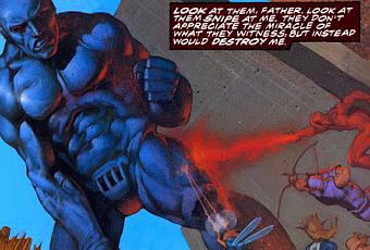 21. 1999: Los Vengadores nºs 19 a 22. A esas alturas de su revival, Busiek decidió que había llegado el momento de homenajear las historias de Ultrón escritas por Shooter. Las únicas diferencias son que las deste eran para adolescentes mientras que las daquel para adultos y que a Shooter no le parecía bien usar más de 1 nº para una mera pelea superheroica pero Busiek no le parecía bien que argumentos tan simples tuviesen una extensión proporcional a su simpleza. 4 nºs para recontar una historia vieja con más medios pero con menos perspicacia: a Busiek se le pasa totalmente que Bruja Escarlata es el opuesto de Ultrón y no saca oro de oponer este a Thor (ciencia contra mitología). No está mal pero podía estar mejor sin esos detallitos tontos típicos de Busiek heredados de sus lecturas infantiles como el que un periodista sea capaz de grabar un genocidio sin perder la calma ni morir él, y luego satreva a acercarse al genocida para verle el careto. No estoy dacuerdo con Busiek en que el Ultrón borracho es el 15 ya que eso supone hacer que tanto el de Nocenti como el de WCA de Thomas sean el mismo. Por ahí no paso. La aportación que aquí hace Busiek no es a Ultrón, es gracioso que el de Thomas sea el Definitivo y el suyo el Ilimitado, que viene a lo de siempre, a aniquilar a la humanidad, sino a Pym. Aquel guionista nos describe que el químico manitas no programó la inteligencia artificial de Ultrón sino que construyó una computadora y metió en ella sus pautas cerebrales de tal modo que el androide realmente es el monstruo de Pym o Hyde. Es él sin la capacidad de simpatizar. Elegante solución que resuelve muchos problemas pero a mi no me convence del todo. Para empezar hace de Ultrón un ciborg más que una máquina y lo que mola de él es que era una. Pero lo que interesaba a Busiek era limpiar a Pym y por eso esta historia. El exmarido de Avispa destruye con sus mismas manos a Ultrón para escenificar que supera definitivamente todos sus demonios interiores de tal modo que vuelve a ser el Hombre Hormiga de los 1ºs tiempos de Lee&Kirby. De hecho parece que Busiek propone que sea ahora Alkhema quien haga el papel del Hyde mecánico de Pym en el Universo Marvel para que tal renacimiento sea para siempre.