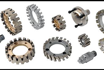 En la imagen podemos ver las muels para rebaje de mármol (las llamadas muelas de rebaje segmentadas y las de rebaje electrodepositadas) La aplicación de estos sistemas de «moldeado» están acompañados por chorros de agua, que refrigeran el cabezal aumentando su durabilidad y limpiando la superficie evitando la existencia de polvo en suspensión.