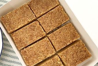 -Con ayuda del papel sacar el shortbread del molde a una tabla y cortar porciones rectangulares con un cuchillo de sierra.