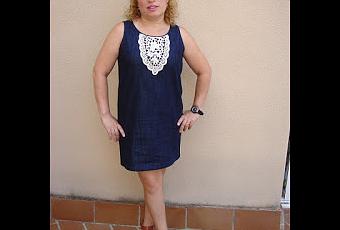 Una mezcla que queda genial una tela tejana con aplicaciones de ganchillo.La verdad es que este vestido tejano quedaria muy soso sin este bonito adorno asi que le damos un sobresaliente a este vestido.
