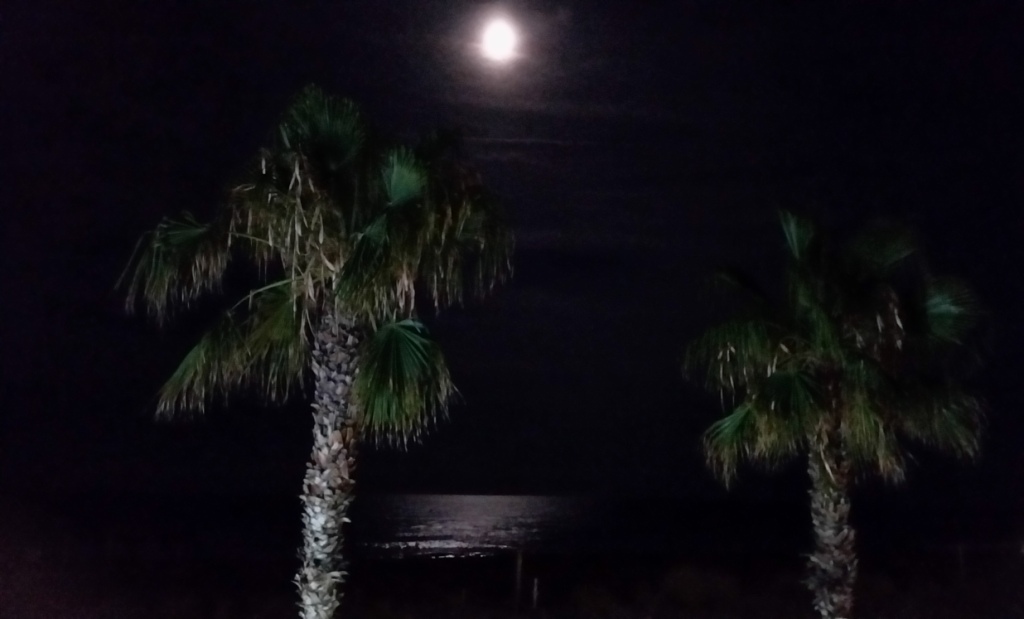 por la noche, fue un placer estar acompañado por la Luna llena que acostaba su luz prestada sobre las olas del mar, a esas horas ya calmo y descansando, y que día a día fue menguando, mientras me indicaba que iba creciendo…ya sabéis lo mentirosa que es la Luna por estas latitudes… , hasta dejarme con su recuerdo, el resto de las noches.