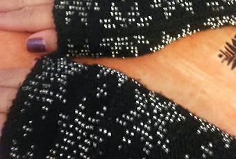 Su labor favorita son los calienta muñecas, una especie de prolongación de la manga del jersey, muy utiles para evitar que te entre aire frío por las mangas. Son muy típicos de las islas Feroe, Islandia y Groenlandia. En esta última la prendas de punto se decoran con pequeñas cuentas, formando motivos geométricos insporados en la tradición nórdica.