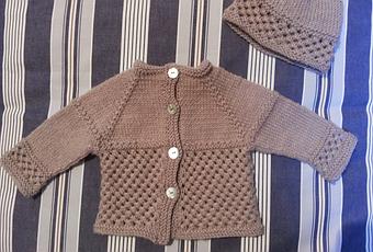 Una vez tuve la chaqueta, el gorrito fue muy fácil. Se teje en un ratito con agujas de dobles puntas, y se puede adaptar a cualquier edad y cabeza.