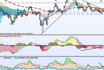 El Histograma del MACD marca que los bajistas tienen menos fuerza...veremos como se comporta Telefónica durante los próximos días, sigo pensando que si queremos ver subir al IBEX necesitamos de Telefónica.