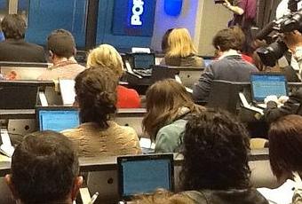 - El resultado es la máxima expresión gráfica de una rueda de prensa sin preguntas. Para eso, que les den el enlace de youtube y ya los periodistas escriben la nota de prensa tranquilamente desde el sofá de su casa... que estamos en crisis y hay que ahorrar.