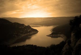 Hay que tomar el camino de tierra de la izquierda, que es el que está en peor estado y baja hasta el mismo embalse de Canelles. Mientras desciendes, el risco donde se asienta la ermita debe de quedar a tu derecha.Vamos bajando siguiendo las marcas hasta casi la altura del agua.