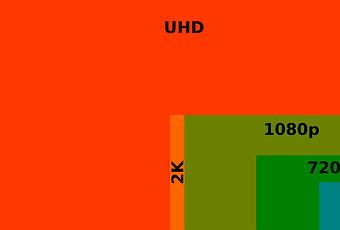4K es un estándar de imagen que consiste en una resolución de pantalla de 4096 × 2160 píxeles (8.8 megapíxeles) en un ratio de 17:9 (el de las pantallas de cine). Seguro que ese ratio os choca ya que estamos acostumbrados al 16:9. Los fabricantes acordaron reducirlo para evitar problemas al construir los paneles. Entonces nació el formato 4K Ultra HD o UHD, que es el formato 4K más popular. Consiste en 3840 x 2160 en 16:9 y equivale a 4 pantallas Full HD (1920 x 1080).