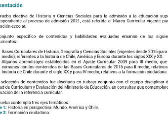 Temario de la Prueba Electiva de Historia y Ciencias Sociales (ex-PSU). Admisiòn 2021.