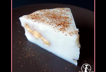 Este postre es típico de Puerto Rico, se elabora con leche de coco y va espolvoreado con canela. Tiene una consistencia firme pero cremosa y yo además lo he rellenado de plátano para darle mi toque personal. :P