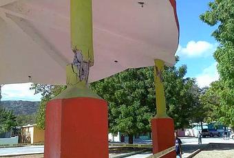Fotos tomadas por el periodista Welinton Perez de daños parciales del temblor de tierra ocurrido pasadas las 7 de la mañana de este martes, con epicentro en Cristóbal. Los daños observados corresponden al municipio de Las Salinas, provincia Barahona. La foto a continuación corresponde a la Glorieta del parque de Las Salinas.
