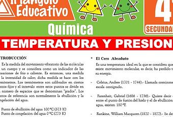 Aquí encontraras GRATUITAMENTE el siguiente material sobre Temperatura y Presión preparado especialmente para los estudiantes de Cuarto de Secundaria. Este contenido se desarrolla en el curso de QUIMICA y te lo compartiremos GRATIS en formato PDF.