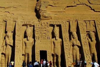 En el sur de Egipto, en la localidad de Abu Simbel se tienen los templos de Ramsés II y de su esposa Nefertari que poseen una imponente fachada exterior.
