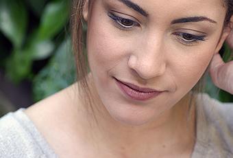 Para los ojos, usaremos una sombra marrón topo clara, con lo que conseguiremos dar un poco de forma al ojo, sin que se aprecie casi nada que lo llevamos maquillado. Para las pestañas podemos optar por una máscara transparente, que las realce pero no les de color (como en las fotografías) o por una marrón o negra, según el gusto de cada una.
