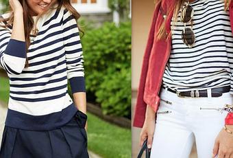Piensa en el típico rayado azul marino que tienes que considerar como fondo de armario ya. Una camiseta de este rollo llevado con un pantalón blanco o falda de vuelo es ideal. También vale con pantalón. Es una elección estupenda que puedes mejorar cuidando detalles como tirar de imaginación y hacerte con una cuerda tipo amarra y usarla de cinturón. Practica el DIY.