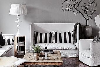 Una vivienda en la que los blancos y negros son la base cromática y en la que no faltan los muebles de madera reciclada en tonos oscuros que resaltan entre los tejidos más claros. La sencillez en la decoración del dormitorio y la simplicidad del baño una vez más nos dicen que no hace falta mucho para darle personalidad a cualquier parte de la casa.