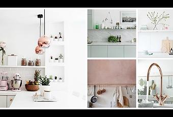 Son tendencia en la decoración de la cocina los tonos metalizados oro y cobre, pero sin abusar de ellos, aplicados en elementos estratégicos, como pueden ser en los tiradores de los muebles de cocina, una lámpara, en el grifo… aportando en el diseño de la cocina un cierto aire glamuroso y vintage, que nos recuerda al estilo de los años 50.