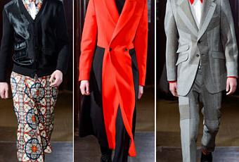 Alexander McQueen con abrigos cruzados y estampados de pijama en pantalones holgados.