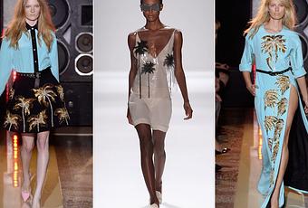 El espíritu tropical tomará el asfalto esta temporada. En la foto, las propuestas de Fausto Puglisi (izquierda y derecha) y de Osklen (centro).