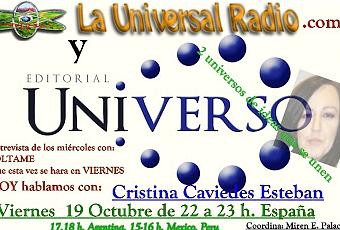 Sí, ya sé que el viernes por la noche lo más lógico es estar por ahí disfrutando del recién estrenado fin de semana, pero... por si alguno de vosotros no tenéis planes hasta más tarde, os invito a escuchar en directo la entrevista que me harán para La Universal Radio. Mirad que cartel tan chulo han hecho las organizadoras: