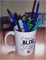 Pero, mi gozo en un pozo. O el plaf de antes: la tazita me llegó rota. Y la mía no fue la única en sufrir el mismo destino fatal. Pude ver por Twitter que a otra chica mínimo le llegó hecha añicos. Pero como yo soy de ilusionarme con las pequeñas cosas, me empeciné en tener la tazita como fuera, vamos, que me encapriché de ella. Así que no había otra manera que hacer manualidades (a estas alturas, desde el cole...) y echar mano del Super Glue, ese pegamento que todo lo pega. Podrá parecer una tontería y no es más que una simple taza, lo sé... pero ¡oye!, que la he ganado, me la merezco. Y por una vez que cae la breva... Eso sí, no podré beber leche con ella, pero al menos me sirve de lapicero. Y tan mal no se le da.Así que, tomándome todo con filosofía, paso a la presentación formal. Señoras y señores, niños y niñas, he aquí mi resucitada taza-lapicero de SM haciéndole compañía a mi ordenador (con mi blog en pantalla). Ha quedado mona. Si la juzgáis, por favor, sed buen@s con ella, que está muy débil la pobre y no está para sustos. Ni yo tampoco.