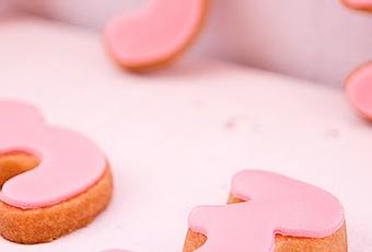 He acompañado esta deliciosa tarta con unas galletitas de mantequilla y fondant rosa que felicitan el tercer año de MDT.