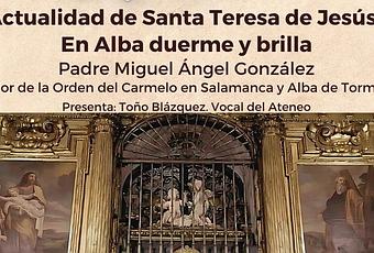 El pasado 26 de febrero, el Ateneo de Salamanca acogió una conferencia del P. Miguel Ángel González, prior de los carmelitas descalzos de Alba de Tormes y Salamanca, titulada «En Alba duerme y brilla». En ella, ofreció un detallado recorrido por la actualidad de Santa Teresa de Jesús en Alba de Tormes, con especial atención al reciente reconocimiento canónico de su sepulcro y la reapertura del mismo tras más de un siglo.