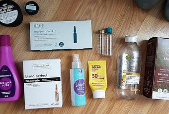 Pues aquí tenéis la foto de familia. A pesar de ser un montón, este mes de junio he gastado menos productos y como podéis ver nada de maquillaje. Eso si, tengo tres polveras a puntito de terminarse, una de polvos, otra de bronzer y otra de iluminador. Les estoy dando una caña brutal asi que no creo que tarden en aparecer por un próximo post de terminados.
