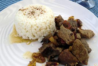 Servimos acompañada de arroz blanco, puré de patatas o patatas fritas.