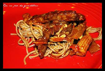 los fideos con la carne bien