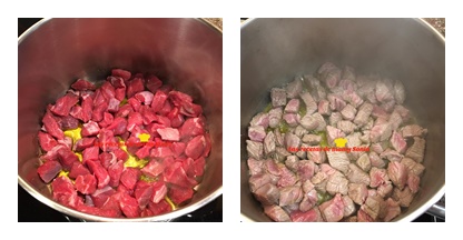 Cuando comience a calentarse incorporamos la carne y removemos.